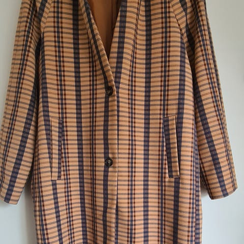 Noa Noa kåpe i ullblend. Varm og myk med for. Fargen er grårosa i str 38. Den har knytebelte i livet.