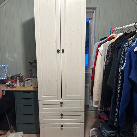 Klesskap med to skuffer selges for 400,-. Noen bruksmerker, ellers god stand. Må demonteres før frakt. Kan hentes i Ski.