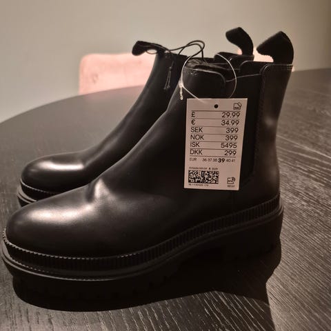 H&M støvler i størrelse 38 i beige farge. Semsket skinn. Støvlene har en dekorativ sløyfe og glidelås på innsiden for enkel på- og avkledning. Materialet er mykt og gir et stilrent utseende.
