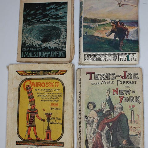 Eldre bøker selges. Årstall = printet i Norge