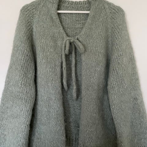 Mariajakka fra Maria Tessem sitt mønster. Strikka av meg i Drops Air i fargen lemonade og Drops Melody i fargen vaniljegul. Den er brukt kanskje maks 4-5 gonger, og blir solgt da fargen dessverre ikkje passer meg. Superfin jakke! Siste bildet i reelen er lånt, resten er mine. Størrelsen tilsvarar ein stor S eller M.