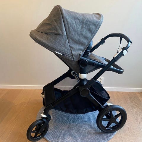 Den har lite slitasje, siden vi har brukt både bæretøy og sykkelvogn i tillegg.