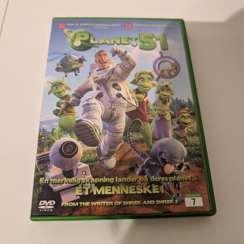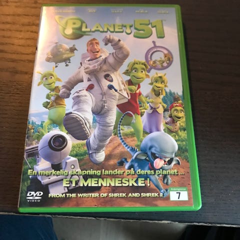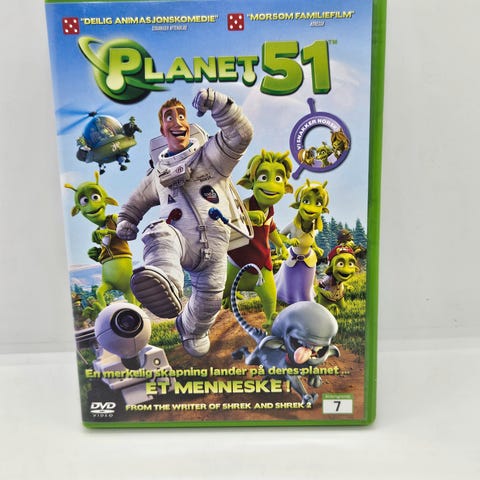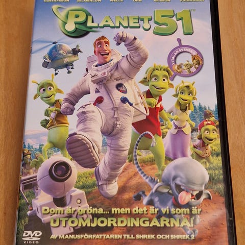 Disney Planet 51 DVD barnefilm. Inneholder filmen Planet 51 som følger en astronaut som lander på en fremmed planet bebodd av små grønne vesener. DVD-en er i st