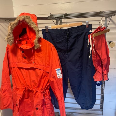 Fjelljom anorakk med pels. Stor lomme foran, snøring i midje og nederst på jakken. Knapper på hette.