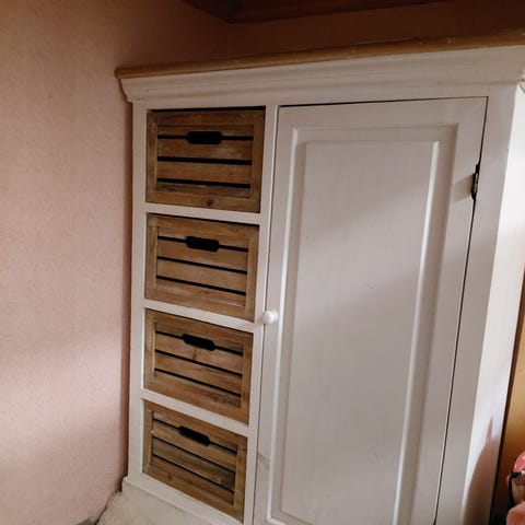 Selger et praktisk og romslig garderobeskap i hvitt fra IKEA.