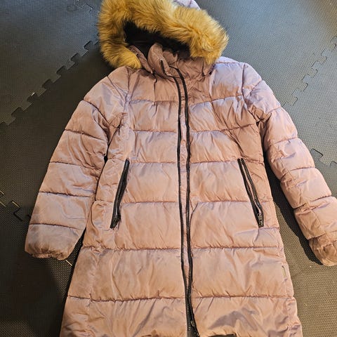 Reima vinterjakke for barn i størrelse 152, unisex modell. Jakken er blå og laget av polyester. Den har hette og glidelåslommer, egnet for bruk i kalde værforhold. Mangler en knapp pa hetten.