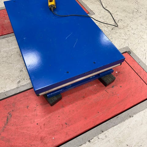 Palleløfter i god stand. Ikke overbelastet eller deformert. Sist godkjent i 2015. Ikke sertifisert etter dette.