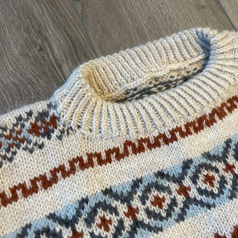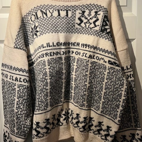 Selger en hjemmestrikket islender med raglanfelling i fargene hvit og grå. Ble dessverre for stor for mannen min så tenker kanskje noen andre vil ha den. Strikket i alpakka fra Sandnes garn.