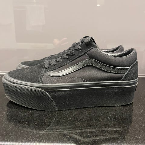 Vans old School sneakers i størrelse 38, med svart farge. Noen mindre merker på den hvite sålen og snorene, men ikke merkbar slitasje.