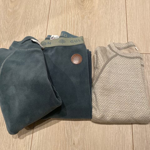 Mini i hus bruker str 110/116 i andre klær og jakken passer enda😊