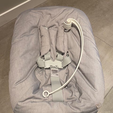Noen år gammel Stokke Newborn set til bruk på tripp trapp stol.