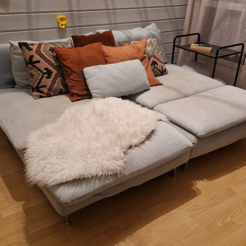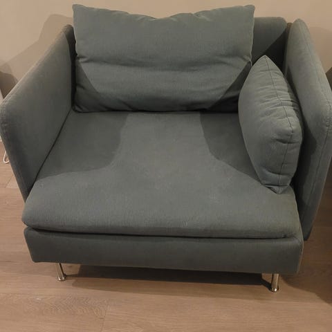 Hvit Söderhamn stol selges. Kjøpt for ca 4 år siden. Er i god stand, men enkelte flekker kan forekomme. Trekket vaskes før salg.