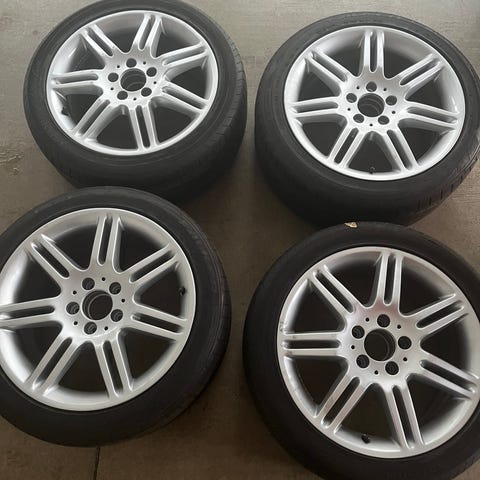 Selger 4 stk Mercedes-Benz AMG felger. Bakdekkene er 245/40 R18, framdekkene er 225/45 R18. Felgene er noe kantkjørt, men er ikke kast i de. Selges med slitte sommerdekk på, så de burde byttes. Send melding ved spørsmål, åpen for seriøse bud ved rask handel:)