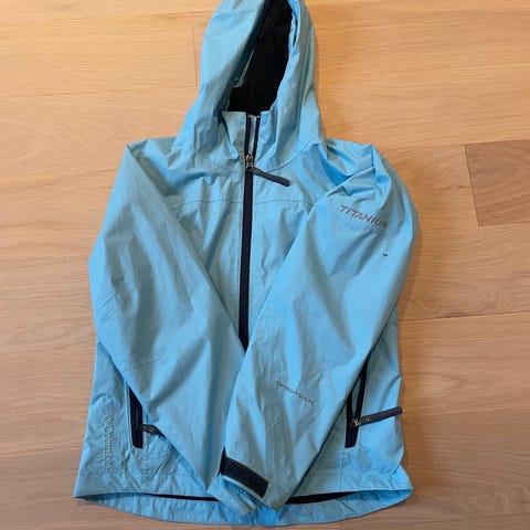 Merk at lappen er tatt av, men jakken er aldri brukt pga feil størrelse. Vanntett. Lys grønn farge. Glidelås i lommene.