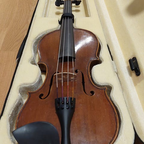 Tysk instrument fra 1904. Original etikett: «Carl Gottlob Schuster». Lengde 35,9 cm, Lokk og bunn i gran og flammet lønn. God stand, men med noen eldre reparasjoner. Attraktiv fiolin. Taksert av fiolinmaker.