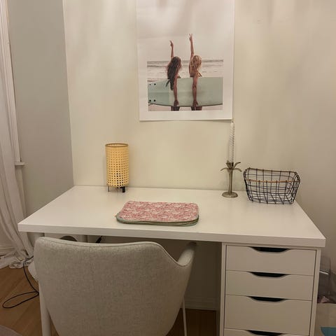 Skrivebord fra IKEA selges. Lånt bilder fra IKEA. Kjøpt nytt. I god stand. Må hentes. Vi bor i 4. etasje uten heis.
