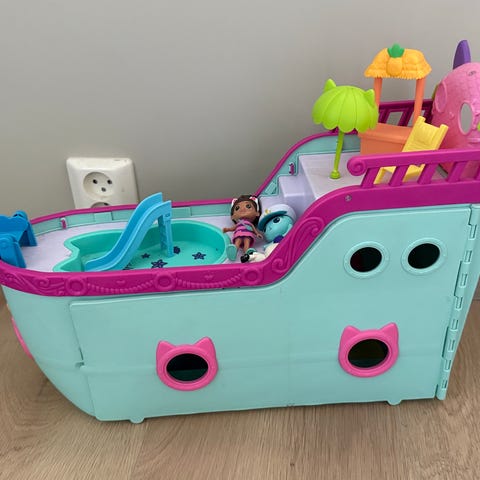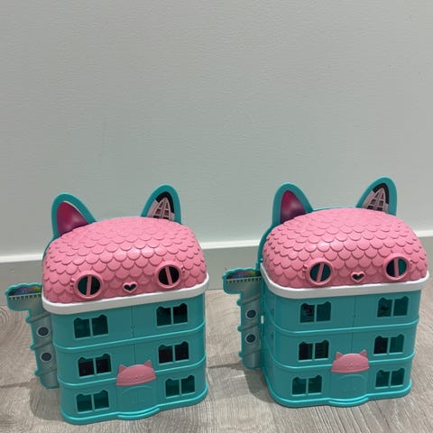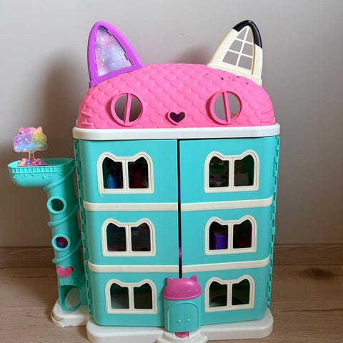 Datteren min selger sitt Gabby's dukkehus. Det er i god stand, men mangler noen deler. Er også noen klistremerker på den, men de kan fjernes.