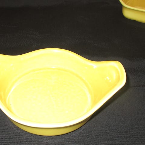 Dette er ravfargede pressglass- eller karnevalsglassplater, som er populære samleobjekter kjent for sin iriserende glans.