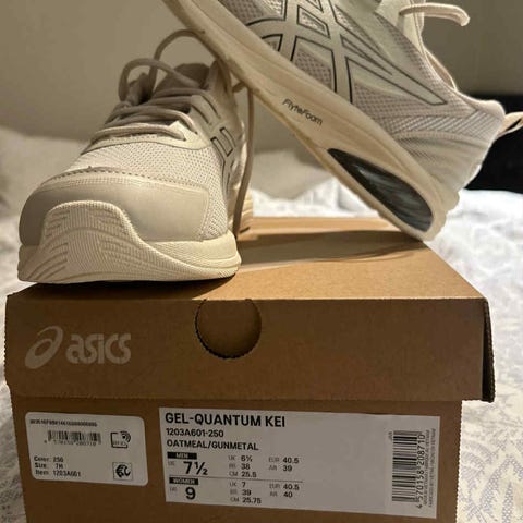 Kjøpte to par Asics Gel Quantum 360 fra Footlocker for nesten to år siden. Brukte bare ett par. Veldig komfortable. Dette paret ble liggende hjemme, helt nye. Lageret hjemme er veldig fullt, så jeg selger dem. Størrelse 41.5 (US 8)