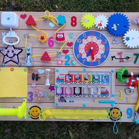 Vår sønn elsker aktivitetsbrett, og for å holde interessen hans for læring og utforskning oppe, lager vi med jevne mellomrom nye brett til ham. Nå har han fått sitt neste “nye” brett, og derfor selger vi dette videre 😊