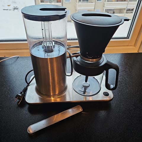 Wilfa CGWS-130B kaffekvern med justerbar kverninnstilling. Farge svart. Designet for å male kaffebønner til ønsket kverningsgrad. Passer til hjemmebruk. Plastic coffee holder where the grind comes damaged but usable