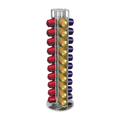 Kapselholder til kaffekapsler, med roterende base gjør det enkelt å plukke ut riktig kapseltype. Plass til fire rader med kapsler.