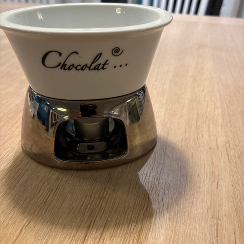 Sjokoladefondue-sett fra Kremmerhuset. Pent brukt. Varmes opp med telys.