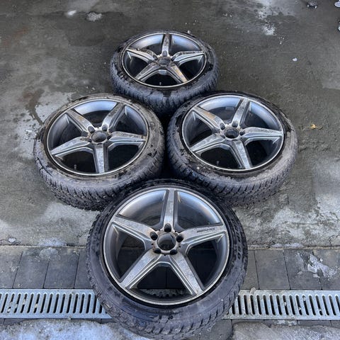 Selger et sett originale MAK aluminiumsfelger med dekk.