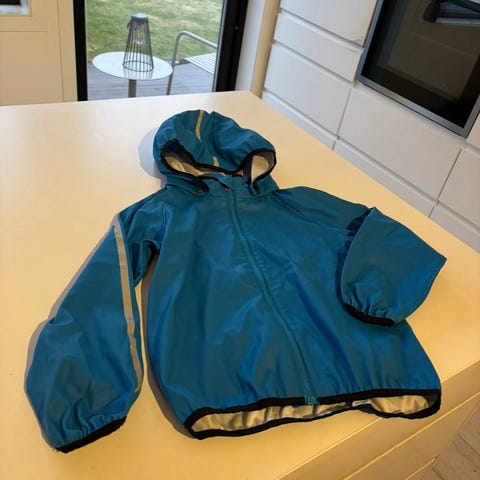 Reima regntøy for barn i størrelse 122. Jakke og bukse i lilla. Foret både over og underdel. Lite brukt av ett barn.