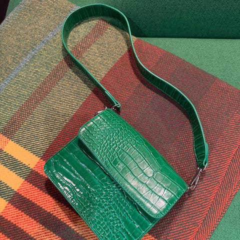 NY veske fra HVISK i croco utseende. Vesken har kort reim + en pyntelenke som følger med, kan klipses av om man ønsker bruke den uten. Vesken er ikke brukt, ny pris kr 1195,- vesken har tre store rom og to små innvendig