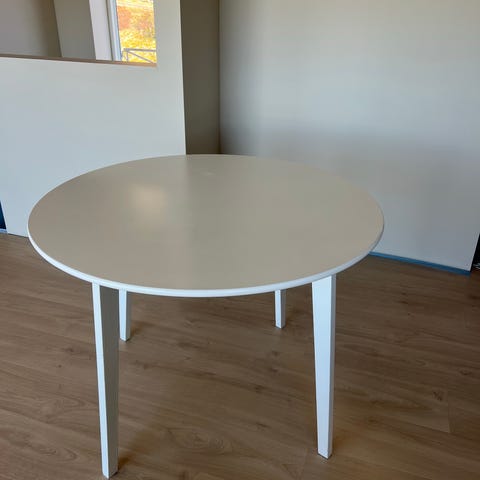 • Hvitt rundt/ovalt bord: Ø 110 cm , høyde 56 cm