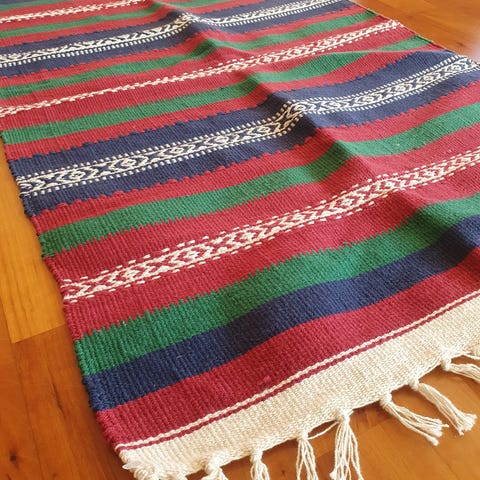 Vevd ull-løper (åkle, rye, duk, veggteppe, gulvteppe). Norsk tradisjonshåndverk.