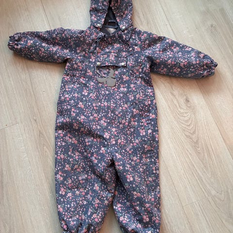 Bergans vinterdress i størrelse 86 for jente selges "som den er". Dressen er rosa med mørkere detaljer og refleks. Gummistrikken under føttene er i orden.