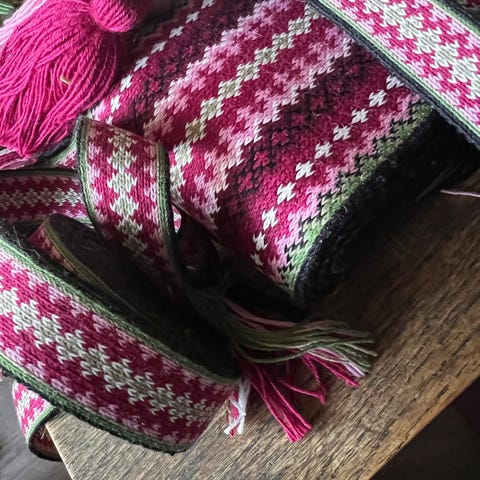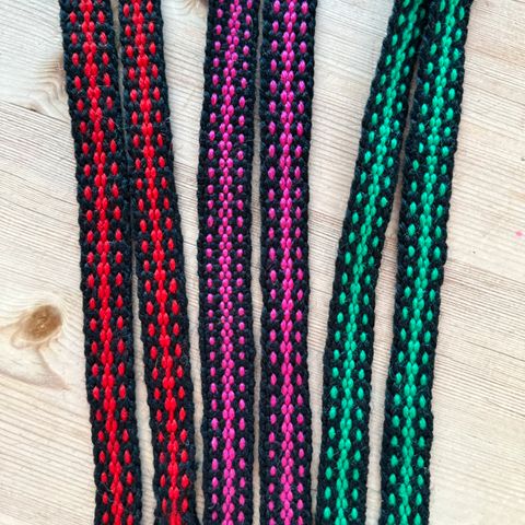 Håndlaget brikkevevd hårvippe. Vevd i ull.