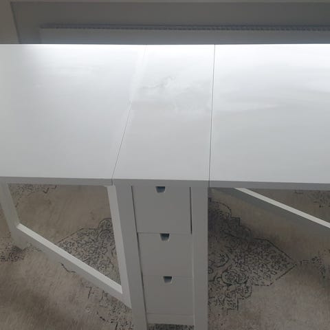 Pent brukt bord fra IKEA. Den er praktisk med klaffer og oppbevaring i midten. Selges da den er lite brukt og har ikke behov for den lenger.