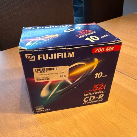CD-R med kapasitet på 700 MB og skrivehastighet opptil 52x. Leveres i pakke med 18 gjenstående og helt ubrukte plater. Egnet for lagring av data, musikk og andre filer.