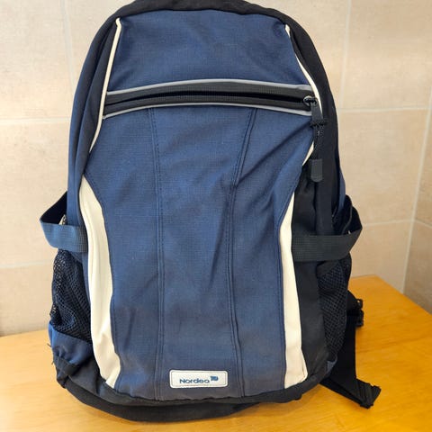 Ryggsekken har flere rom og lommer for oppbevaring, justerbare skulderstropper og polstret rygg for komfort. Passer til daglig bruk og bæring av ulike gjenstander.
