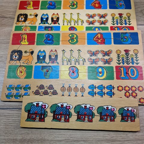 Puslespill laget av tre, ubrukt, men plast tatt av