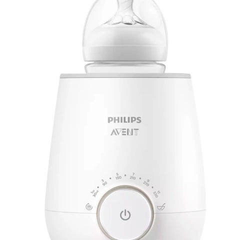 Philips Avent flaskevarmer i hvit farge. Elektrisk enhet med justerbar temperaturkontroll. Designet for oppvarming av babyflasker. Strømkabel integrert i enheten for enkel oppbevaring.