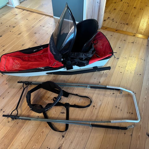 Fjellpulken barnepulk komplett ink. original pulkpose og kjøresele