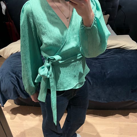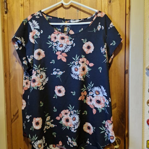 Sort og hvit stripete topp med bryst lomme. Behagelig å ha på seg.
