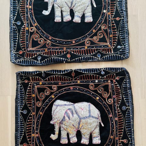 2 stk, putetrekk det hvite er ikke brukt . Kjøpt i India .Så får du det turkise med på kjøpet . Da det det er en liten skade som er lett å fikse .hentes på Hovseter eller sendes mot at kjøper betaler porto