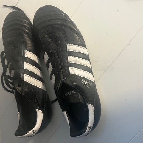 Adidas Copa Mundial fotballsko i svart og hvitt for herre. Skoene har en robust konstruksjon med kunstgress-såle, egnet for bruk på kunstgressbaner. Størrelse 36. Nesten ubrukt