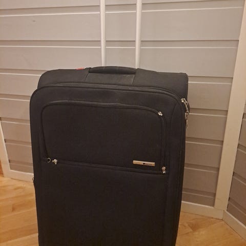 Brukt en gang! Koffert i stoff. Mål: Høyde 77 cm, bredde 47 cm og dybde 23 cm. Må hentes i Trondheim. Selges kr 250,-.