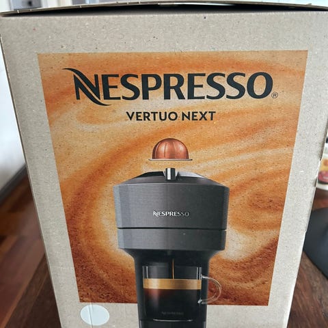 Selling Nespresso coffee machine and attached milk frother, including, capsule display organiser (x1), original coffee pods packs (x7) and extra loose pods, descaling packs (x2), recycling bags (x2) and with coffee machine BOX!