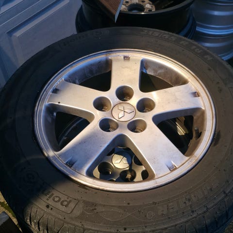 4 stk. Hakkapeliitta piggdekk 185/60 R15 på felg av type Mangels. Ca 7 mm mønsterdybde. Et par småskader/riper på noen av felgene.