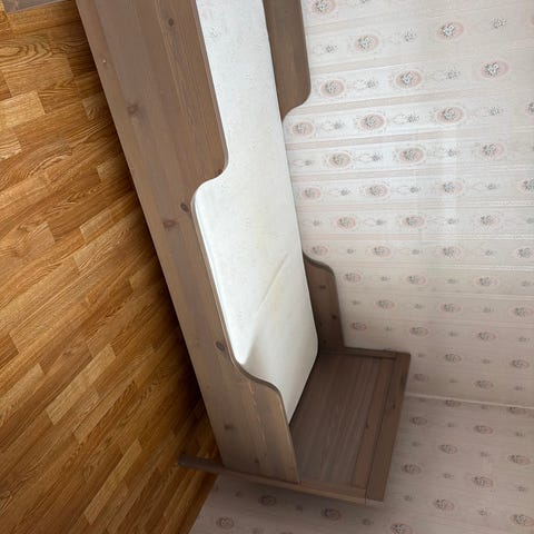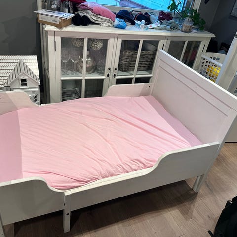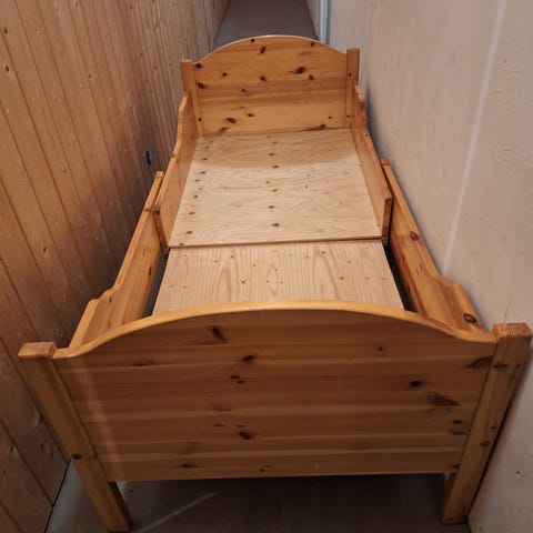IKEA Juniorseng laget i tremateriale. Madrassmål 70x160. Madrass og madrassbeskytter følger med.