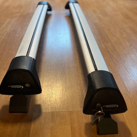 Veldig lite brukte wingbar, i fin stand. Takboks selges også, det er en Skiguard 850 til 1500,-