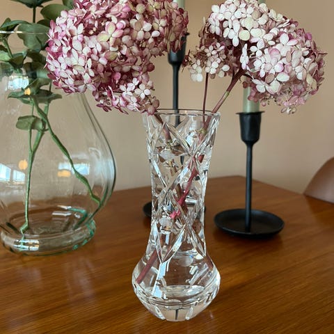 Flott retro krystallvase med sandblåst dekor- perfekt stand