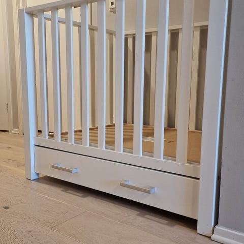 Pent brukt lekegrind. Vi har vært veldig fornøyd, men nå har barnet vokst i fra den. Har vært ingen ulykker (oppkast eller lignende) i grinden. Selges med lyseblått leketeppe som passer oppi. Vi har ikke baggen som hører til, men den kan fortsatt fint pakkes sammen. 90*90 cm. Høyde er 74,5 cm.